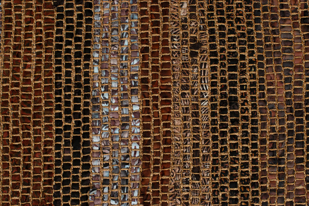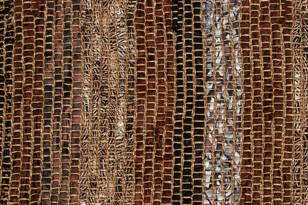 Inspired by Japanese Sakiori textiles, this table runner is handwoven using torn strips of hand-dyed batik fabrics. The fabric is dyed, rather than printed, making the runner reversible. Sakiori is a tradition of creating new handwoven fabric from old textiles by tearing them into strips.