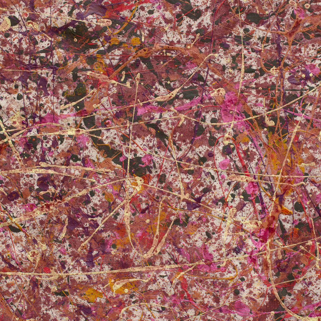 This painting was the end of a bolt, and I had just enough yardage to create a 20 x 60-inch piece. I set it next to another piece I was working on, and applied each color from the other piece in a splatter pattern onto this piece.