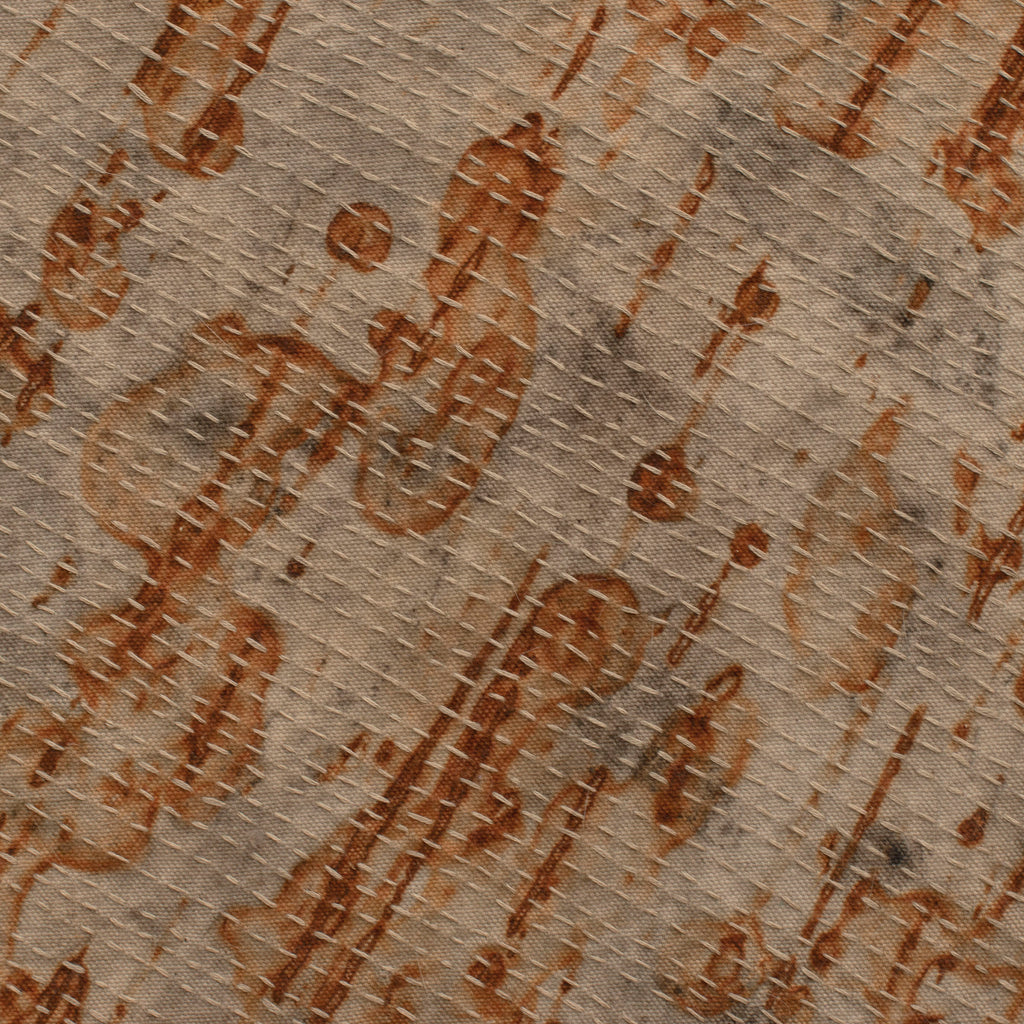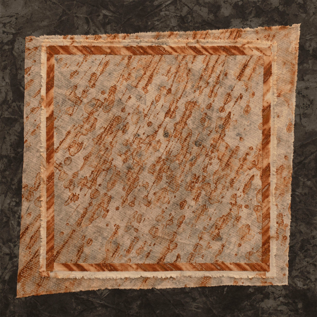 • iron oxide, leaf prints, natural earth pigments and hand stitching on canvas